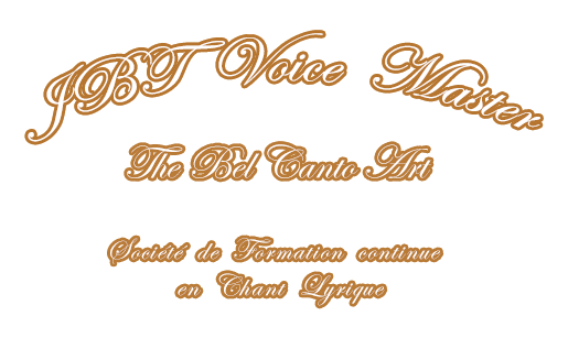 La Société de formation continue en chant lyrique JBT Voice Master a été créée en octobre 2010 par le ténor Jean-Bernard Thomas sur l'Ile de La Réunion. Elle s'adresse aux chanteurs professionnels, solistes ou artistes des choeurs, ainsi qu'aux amateurs confirmés.